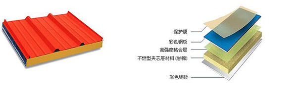 巖棉夾芯板產品用途:應用于各種防火隔音場所,