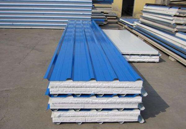 2)上下表面:采用鍍鋅彩色鋼板,厚度為0.4-0.8mm。根據客戶的具體要求,也可采用鍍鋁鋅彩色鋼板或鍍鋅鋼板。鋼板先經成型機軋制成型后在與巖棉工廠復合。